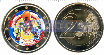 Цветная монета, Словения 2 евро 2025, 100 лет со дня рождения Мики Мустера