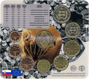Словакия, официальный годовой набор 2020, 50 лет нумизматическому обществу BU (8 монет)