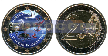 Цветная монета, Словения 2 евро 2017, 10 лет хождения Евро в Словении