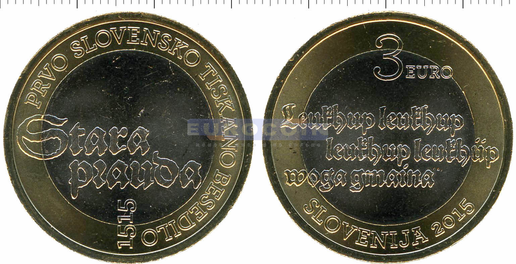 Словения 3 евро 2015, 500-я лет первому словенскому печатному тексту