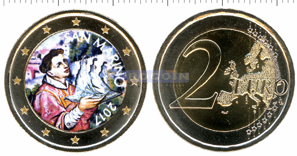 Цветная монета, Сан Марино 2 евро 2017, регулярная