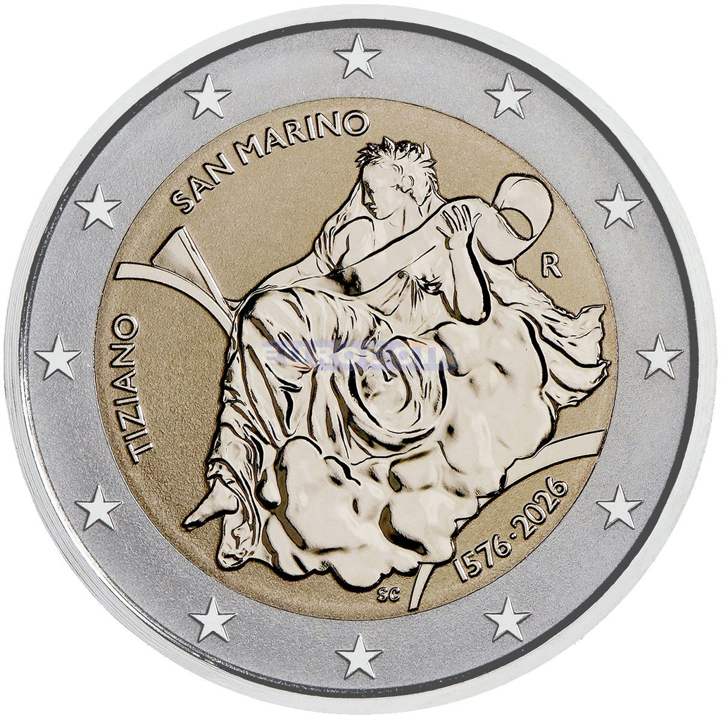 Сан-Марино 2 евро 2025, 450 лет со дня смерти Тициана Вечеллио