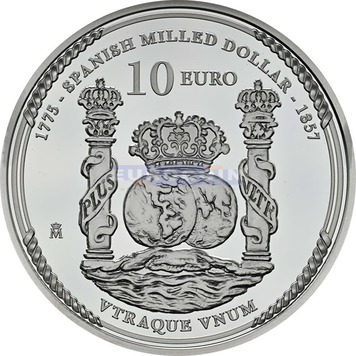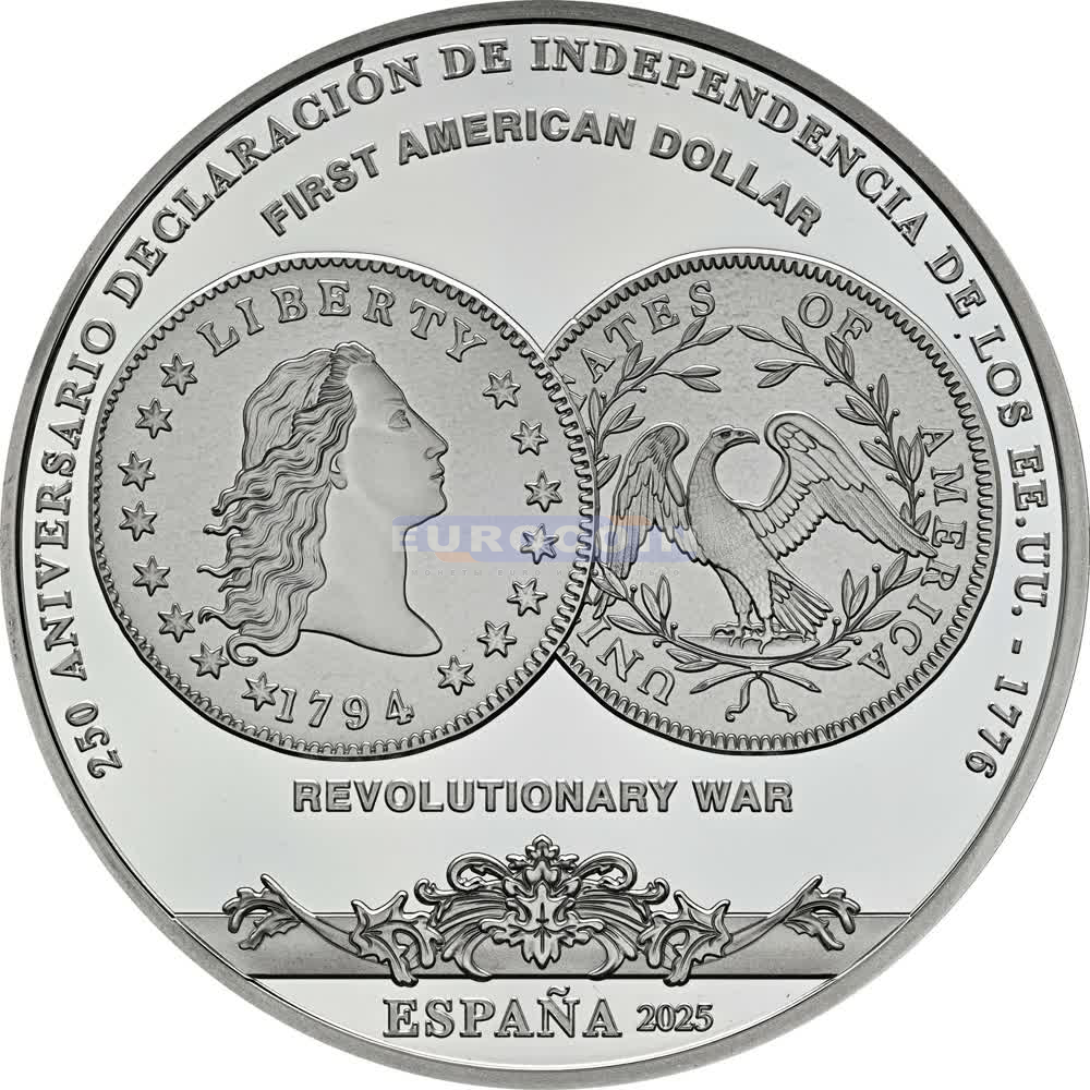 Испания 10 евро 2025, Первый американский доллар - 250 лет провозглашения независимости Соединенных Штатов