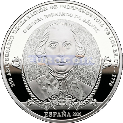Испания 10 евро 2026, Бернардо Висенте де Гальвес - испанский Генерал-капитан - монета из серии «250 лет провозглашения независимости Соединенных Штатов»