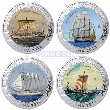Испания набор 4 x 1,5 евро 2018 г. - Серия «История судоходства» первый выпуск в альбоме: