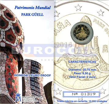Испания 2 евро 2014, Парк Гюель, работа Антони Гауди в Барселоне - монета из серии «Памятники Всемирного наследия ЮНЕСКО»