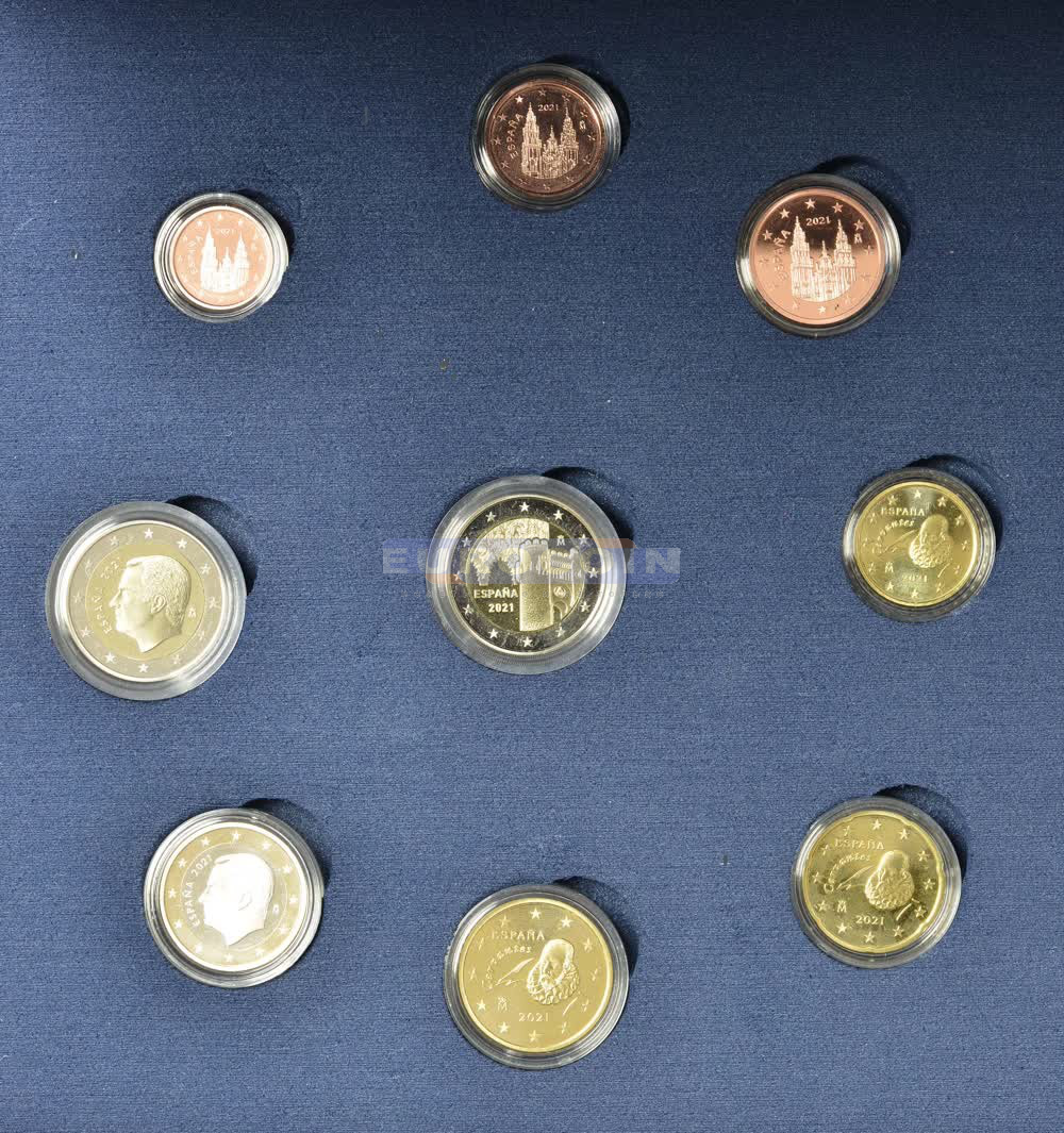 Испания, официальный годовой набор 2021 PROOF (9 монет) - 1 цент - 2 евро + 2 евро (Толедо)